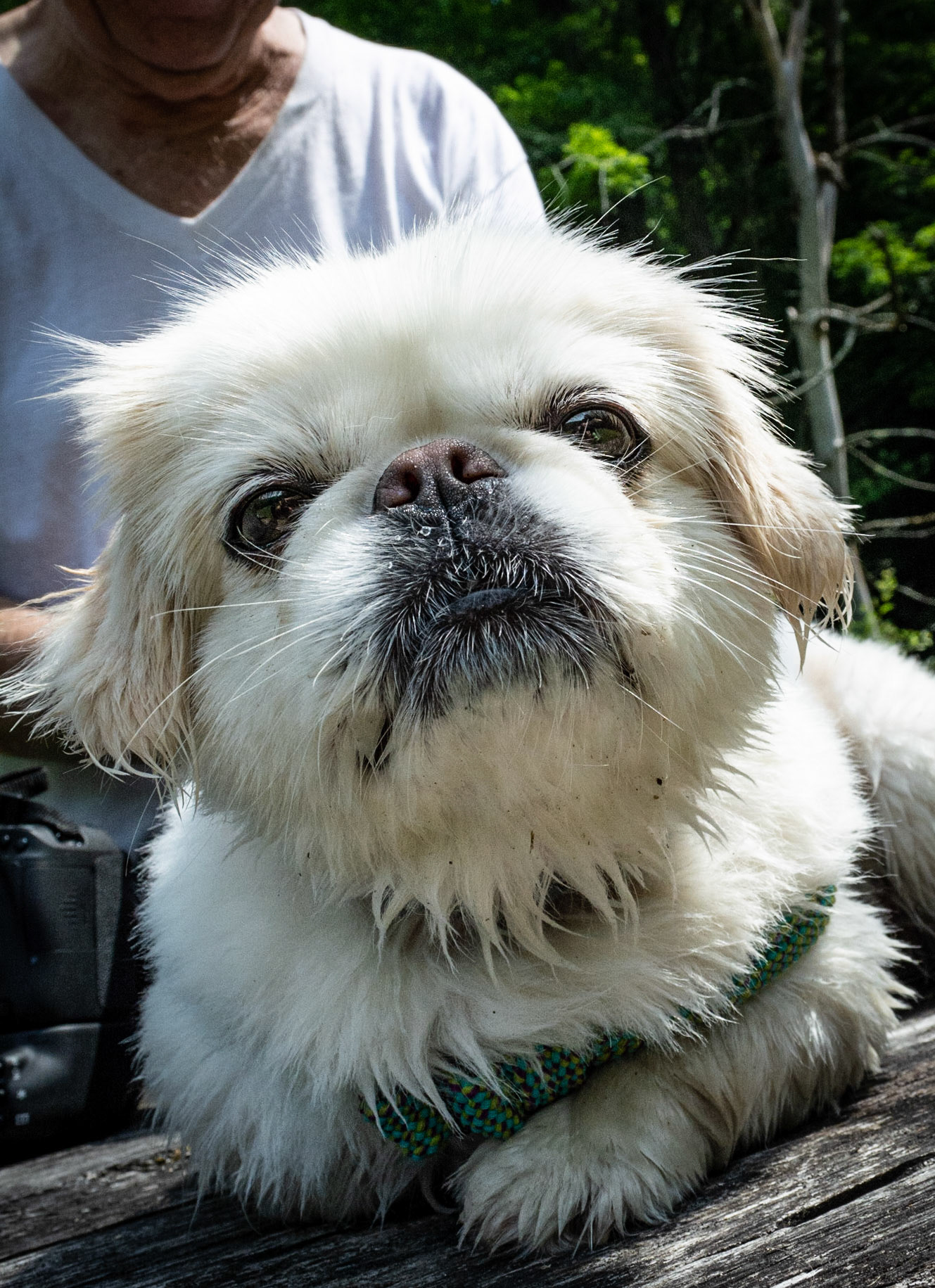 Un joli petit pékinois qui accompagne son maître Raymond